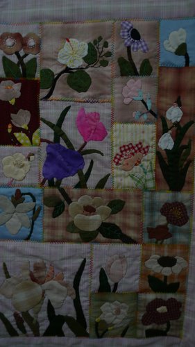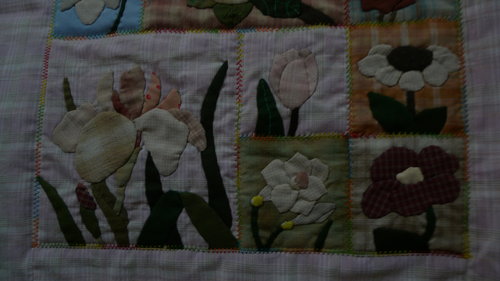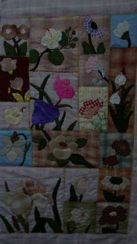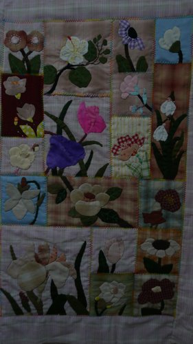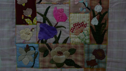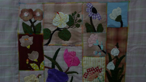 終於完成囉~一片一片ㄉ拼接'本來想手縫羽毛繡'但是怎ㄇ繡就是卡卡ㄉ(好醜)換各X型好ㄌ'怎ㄇ繡ㄌ很久才一小牌而且不均勻也不漂亮'直接機縫比較快囉~