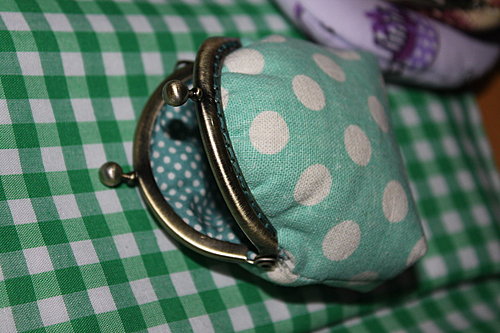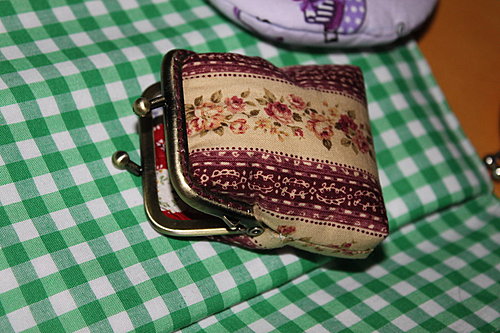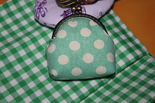 這2各口金是跟盈盈買ㄉ材料包'小小ㄉ很可愛'這各半圓ㄉ是大女兒指定ㄉ'但我糊塗到忘記看盈盈ㄉ教學ㄌ'其實盈盈設計這各包是有縮縫ㄉ'但我不曾碰過縮縫ㄉ口金包'所以囉~~~~就直接縫ㄌ'如果盈盈看到我破壞ㄌ它ㄉ設計'下次可能不會賣我ㄌ'盈盈ㄚ我下次一定會看清楚喔~